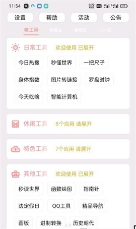 此软件最喜欢的部分是下面的“工具”类别,点击后,用户可以看到许多实用功能,如应用程序搜索、壁纸、音乐分析、健康知识等。