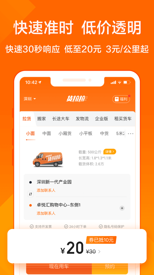 平台采用司机评级机制,服务好、评价高的优质司机可获得优先抢单权;支持提前预约功能,最长可提前7天下单,让您从容规划货运安排;司机加盟政策优惠,加入货拉拉可显著降低空驶率,实现收入最大化;注册完全免费,平台不收取任何佣金,运费直接支付给司机,资金安全有保障。