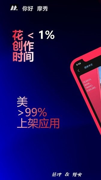 摩秀是一款革命性的移动端专业设计软件,它将复杂的设计流程简化到极致。使用摩秀,设计师可以在1小时内完成一个优质项目的设计工作,半天时间就能创作出媲美艺术品的作品。这款软件完美支持从设计构思、素材制作、截图生成到最终导出的全流程操作,所有工作都可以在移动设备上轻松完成。与传统桌面设计软件相比,摩秀能让设计师用不到1%的时间,创作出超越99%上架应用水准的惊艳作品。