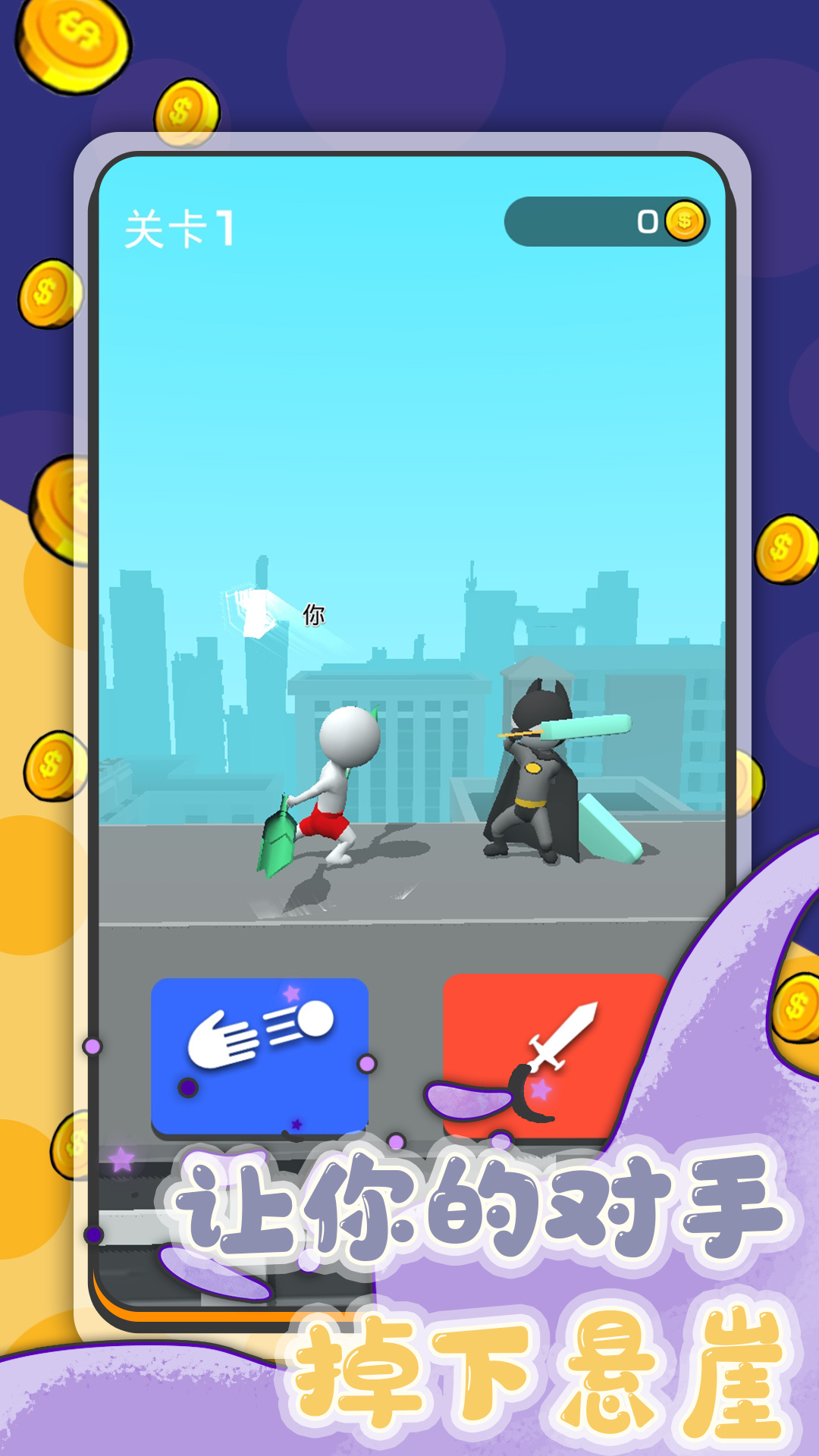 游戏的操作非常简单,首先你需要绘制一把武器。在绘制过程中,你可以随意发挥创意,但要注意墨水的剩余量,避免画到一半墨水耗尽。完成武器制作后,就可以开始战斗了。在战斗中,你需要把握时机,点击屏幕让火柴人发动攻击,将对手击落悬崖或直接消灭。游戏还提供了多种战斗技巧,比如连续攻击、防御反击等,让你在对决中占据优势。通过不断练习,你可以掌握更多战斗策略,成为真正的绘画战士。