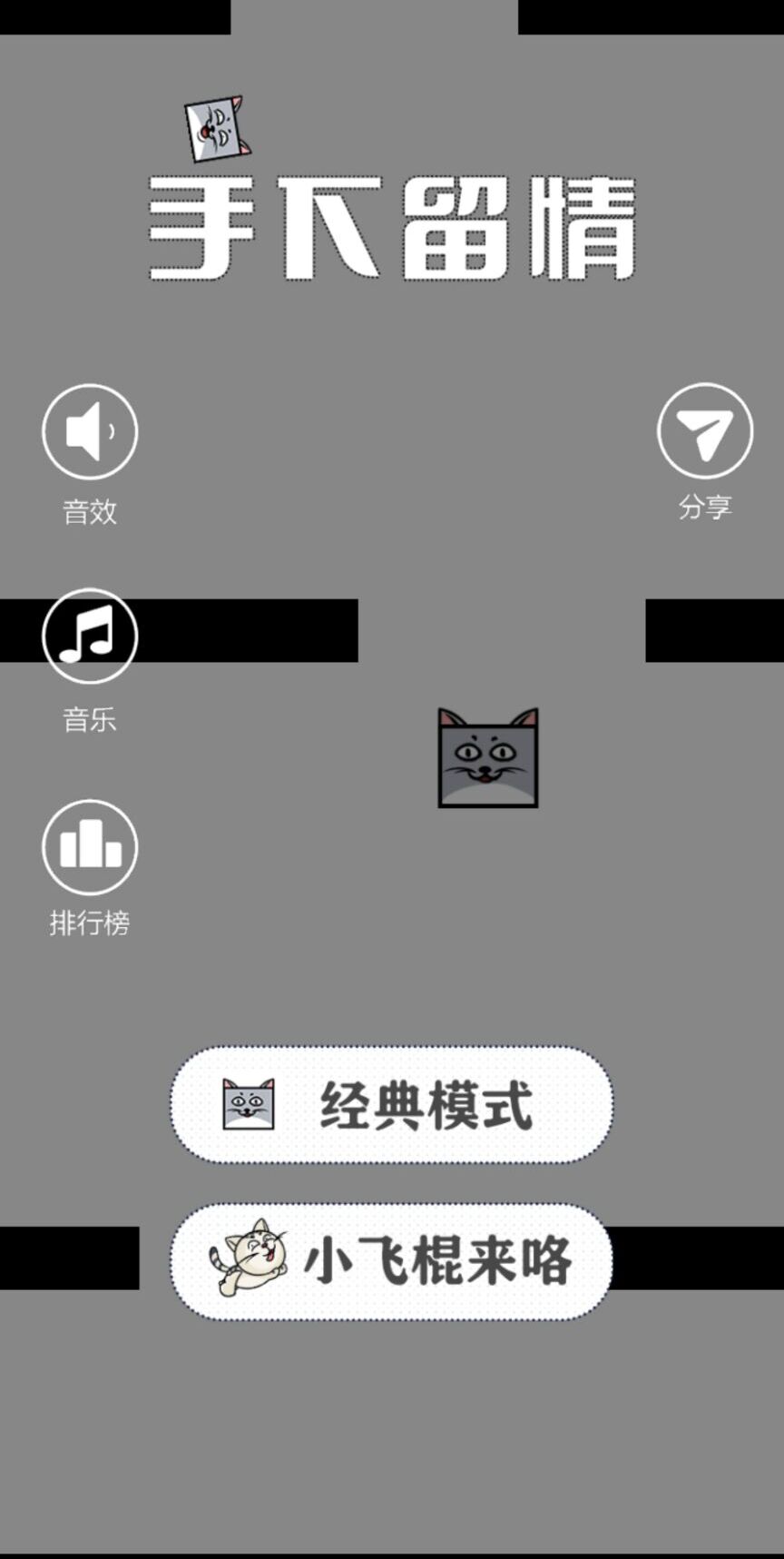 《手下留情》是一款风靡抖音的竖版休闲游戏,灵感源自经典游戏Flappy Bird。玩家只需通过简单的左右点击操作,就能操控一只可爱的猫咪在空中上升飞行。游戏过程中需要避开各种随机出现的障碍物,考验玩家的反应速度和操作技巧。清新简约的画面风格搭配轻松愉快的背景音乐,为玩家带来愉悦的游戏体验。无论是打发碎片时间还是挑战自我极限,这款游戏都能满足你的需求。