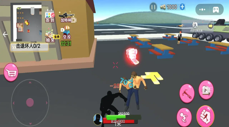 1、采用美漫风格渲染的火柴人角色搭配写实场景,碰撞产生的彩色粒子特效让战斗充满视觉冲击力,每个NPC都有独立的AI行为树系统。