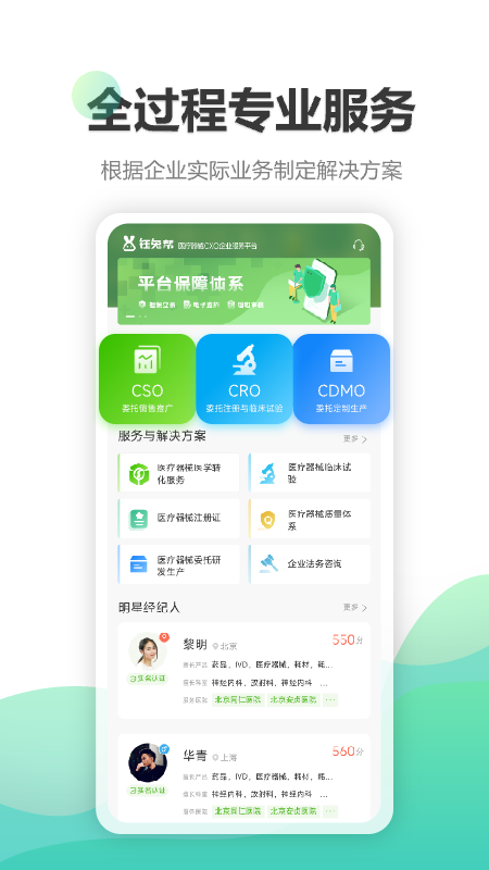 钰兔帮app下载,这是一款专为医疗器械行业打造的一站式企业服务平台。作为医疗器械CXO领域的专业平台,钰兔帮致力于为药械企业、代理商及行业从业者提供全方位的解决方案。平台通过智能化技术手段,为企业提供定制化的全流程专业服务,包括在线智能派单系统、多样化凭证验收机制等,有效提升企业运营效率和服务质量。