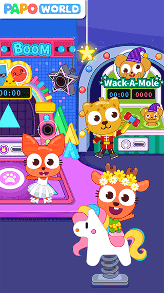 1、从售票处开启游园之旅,排队时还能与NPC进行趣味对话,沿途飘扬的彩旗和气球营造节日氛围。2、马戏团区域包含十余种精彩表演,孩子们可以参与互动魔术,甚至亲自尝试杂技动作。3、经典游乐区设有升级版摇摇车和跳舞机,创新的计分系统让每次挑战都充满惊喜。
