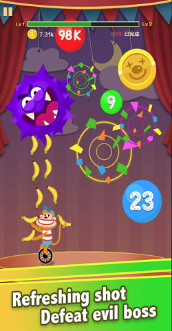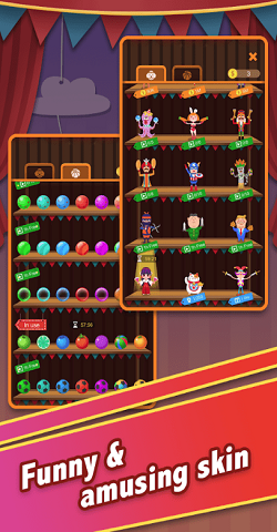 1、完全免费畅玩,数十个特色角色和道具无需付费即可解锁,让你尽情享受游戏乐趣。2、精心设计的马戏团场景充满欢乐氛围,绚丽的灯光效果和欢快的音乐让你沉浸其中。3、游戏中会随机掉落神秘礼物,可能是无敌状态、减速效果或是新伙伴,为表演增添更多惊喜。4、挑战强大的BOSS关卡,体验紧张刺激的对决,考验你的操作技巧和反应能力。