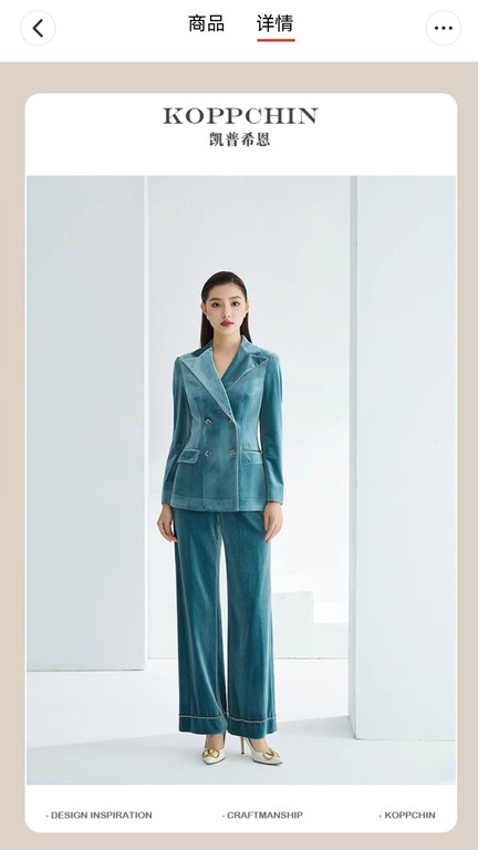 产品优点是完全定制、交货快捷、质量无忧。用户可以根据自己的喜好和身材定制套装,并在短时间内收到高品质的产品。采用德国杜克普缝纫设备和意大利面料,所有成品经过18道质检工序,确保媲美奢侈品牌的工艺水准。
