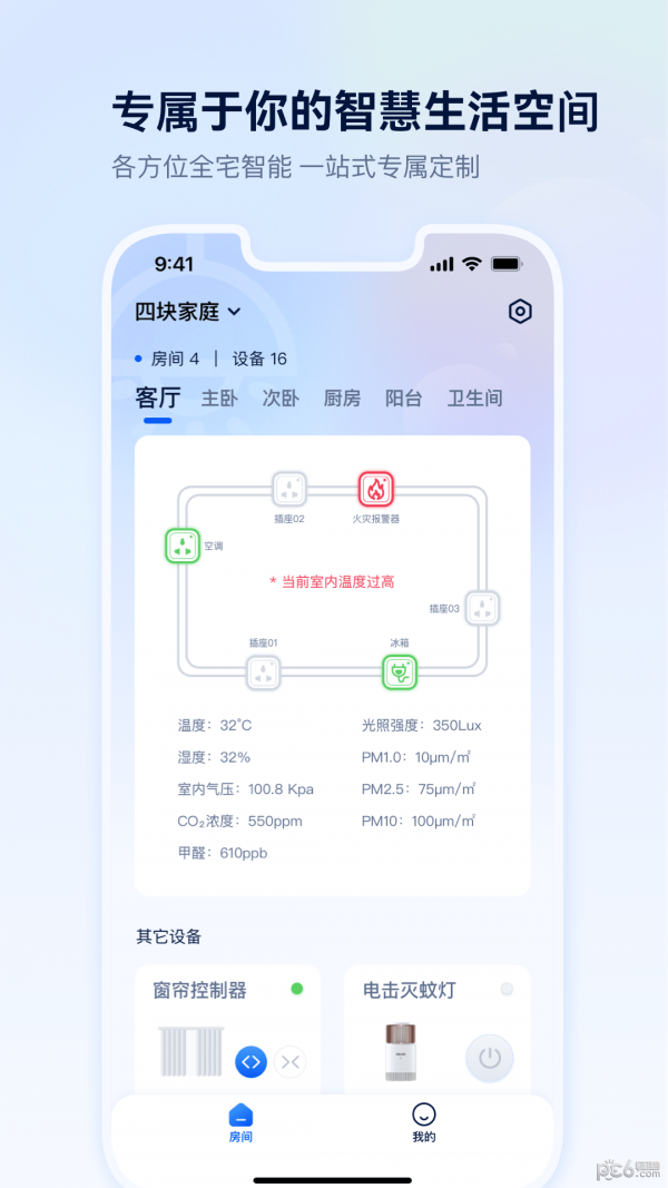 四块智家在线根据爱好定制您的专属智能生活模式,每个设备都可以分类控制。