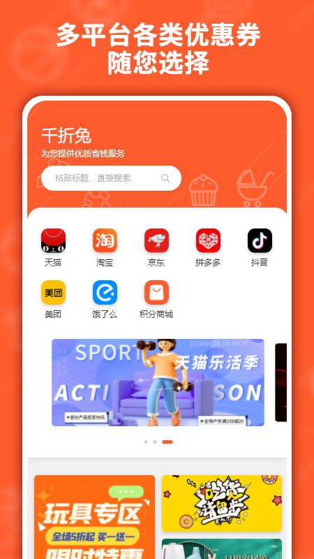1、多平台资源整合:汇集淘宝、京东、拼多多等主流电商平台优惠券,支持跨平台比价,让您轻松找到最低价商品。2、积分商城系统:购物产生的积分可兑换实物礼品或抵扣现金,积分永久有效不设门槛。3、社交分享返佣:一键将优惠商品分享至微信朋友圈或好友,成功交易即可获得丰厚佣金奖励。4、每日外卖红包:联合美团、饿了么等外卖平台,天天发放大额外卖红包,下单还能额外获得返现奖励。