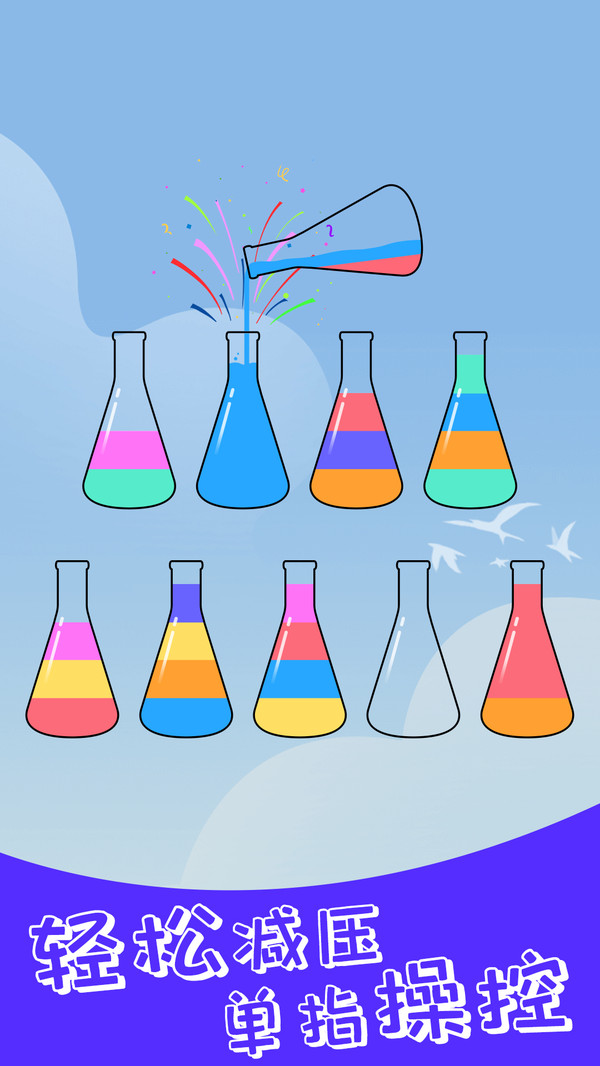 游戏最大的特色在于其完全随机的排序机制,每次挑战都会带来全新的体验,让你的创造力得到充分发挥。通过不断尝试,你可以掌握各种液体分类的技巧,创造出令人赏心悦目的色彩组合。游戏还特别适合在假期或碎片时间体验,最新颖的水分类玩法将为你带来前所未有的解谜乐趣。精美的画面效果和流畅的操作体验,让每一次分类都充满成就感。