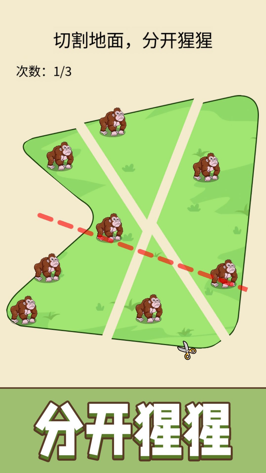 超级划线达人是一款集休闲与益智于一体的创新游戏。在游戏中,玩家需要将不同的大猩猩分隔到独立的区域,每个关卡都有特定的线条数量限制,这既考验玩家的逻辑思维能力,又锻炼空间想象能力。游戏设计了丰富多样的关卡,从简单到复杂,循序渐进地提升难度,让玩家在挑战中获得成就感。游戏界面友好,操作直观,无论是儿童还是成年人都能轻松上手,是休闲娱乐的绝佳选择。