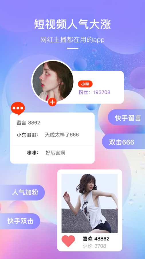 ♦快手网名库:提供上万种不同类型的创意网名,包括文艺、搞笑、个性等多种风格。独特的网名能让您在众多用户中脱颖而出,加深观众印象,有效增加人气和点赞量;