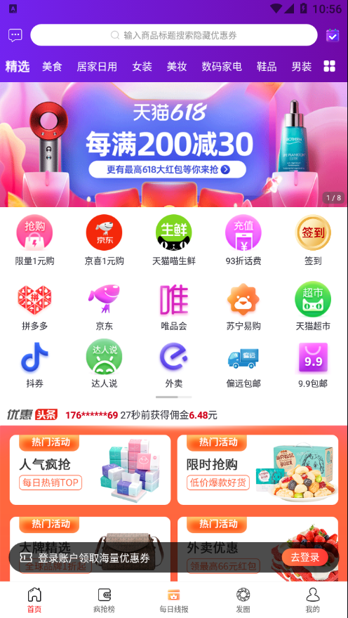 3.品牌特卖:汇聚上千家知名品牌,涵盖服装、居家、母婴、食品、鞋包、数码电器等多个品类,提供丰富的品牌折扣商品。