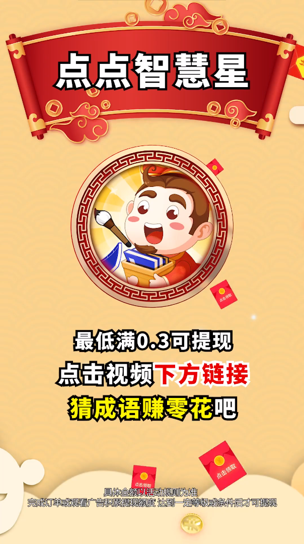 点点智慧星红包版是一款集知识性与趣味性于一体的成语学习应用。它不仅提供海量成语题库,还会每日自动更新暖心词藻和精选美文,让用户在轻松答题的同时享受阅读的乐趣。界面设计简洁大方,操作流畅便捷,特别适合碎片化时间学习。在这里,你可以阅读到各类名人名言,感受文字的魅力;也能通过成语填空游戏,在娱乐中提升文学素养。无论是想学习成语知识,还是单纯想赚点零花钱,这款应用都能满足你的需求。