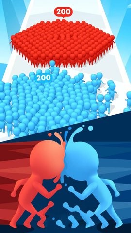 2、创新的跑酷玩法融入了实时对抗元素,玩家不仅要收集散落的橡皮人,还要在特定区域与其他队伍展开人数比拼。吸收更多人群将显著提升你的战斗力,为最终决战奠定优势。