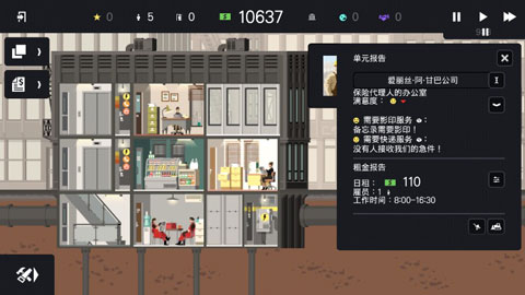 游戏提供了丰富多样的玩法模式,包括新手友好的教程模式、自由度极高的沙盒模式,以及考验策略的场景挑战模式。在建造过程中,你需要全面考虑租户需求、建筑维护、声望管理等诸多要素。随着大楼不断增高,你将面临更多挑战:如何平衡收支?如何提升建筑品质?如何应对突发事件?这些都将考验你的经营智慧。游戏还特别设计了顾问系统,你可以聘请各类专家来提升建筑的整体价值。