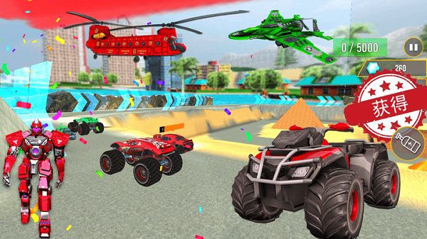 《越野卡车机器人手机版》是一款融合了竞速与战斗元素的创新汽车人题材手游。游戏将传统卡车竞速与机器人变形战斗完美结合,为玩家带来前所未有的双重刺激体验。在游戏中,玩家不仅能感受到风驰电掣的竞速快感,还能随时将卡车变身为战斗机器人,使用各种武器进行激烈对抗。每款卡车变身后的机器人形态和能力都各具特色,玩家需要通过比赛赚取金币来解锁更强大的车型,打造属于自己的终极战斗机器。