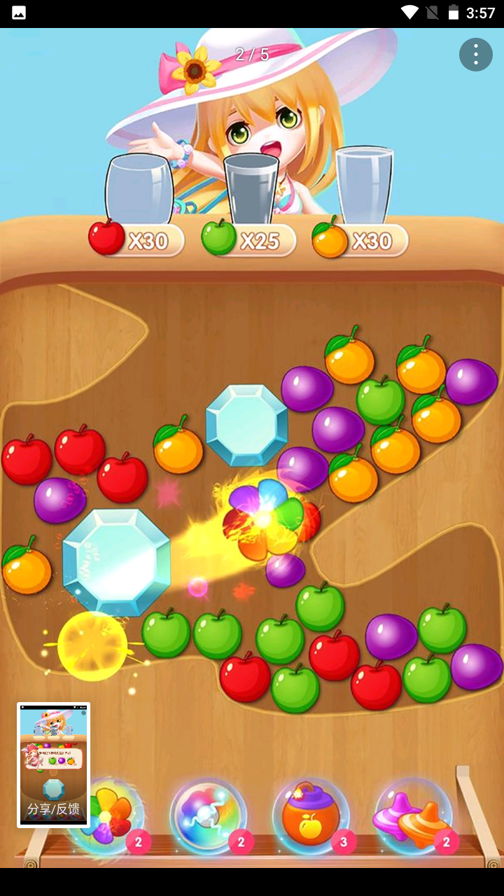 1、游戏提供了多种实用道具,熟练掌握这些道具的使用技巧可以快速消除水果,让玩家享受更流畅的游戏体验。