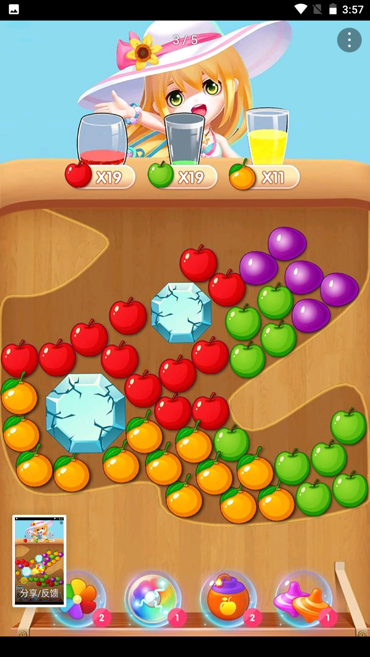 3、核心玩法是通过滑动屏幕匹配三个或更多相同水果进行消除,考验玩家的观察力和反应速度,看看谁能创造最高分数记录。