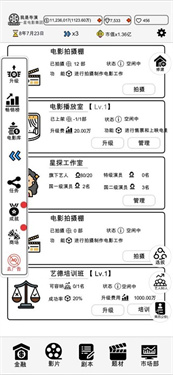 5、电影质量评价体系极为细致,从剧本完成度到演员表现,从场景还原度到后期特效,每个环节都会影响最终成片质量。玩家需要通过不断优化制作流程,才能产出叫好又叫座的精品电影。