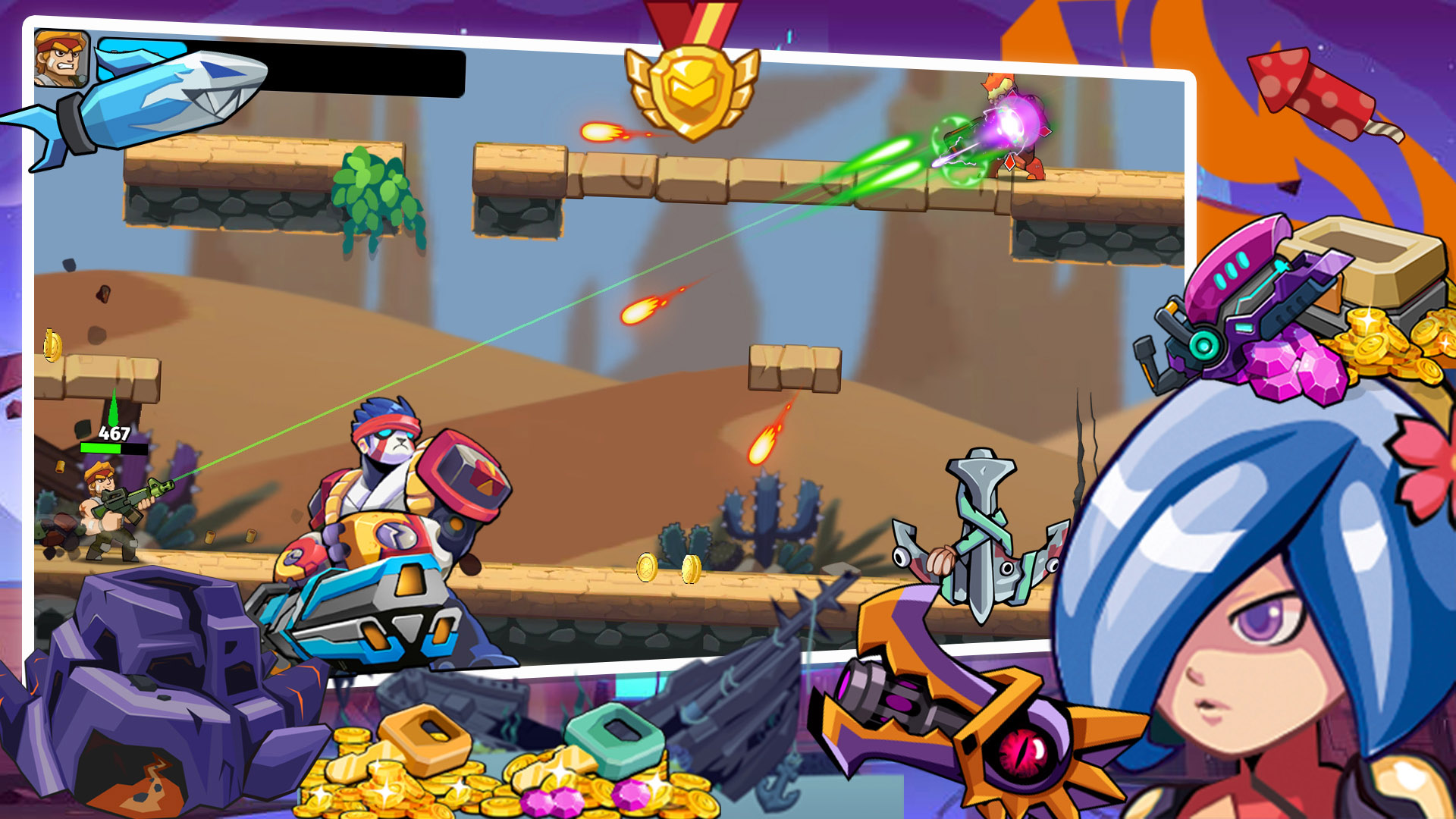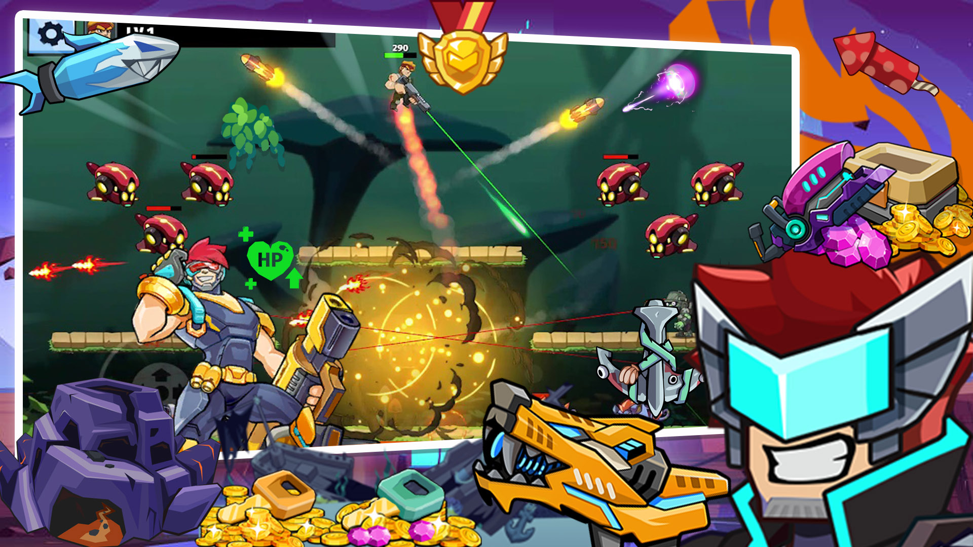 游戏提供了140种威力惊人的武器供玩家选择,从手枪到火箭筒应有尽有。作为一款2D平台游戏,操作简单易上手,无需联网即可畅玩。游戏包含150个精心设计的任务关卡,每个关卡都充满挑战,考验着玩家的勇气和技巧。你将面对数百种不同类型的怪物敌人,从普通小怪到强大的BOSS,每一场战斗都是全新的挑战。游戏采用自动射击机制,玩家只需专注于控制角色移动、瞄准和躲避敌人的攻击,让战斗更加流畅爽快。