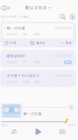 3、录制后可以立即共享。并且有一系列功能,例如播放,存储和记录。简单的页面功能易于使用;支持创建声音专辑,将相关录音整理成合集。