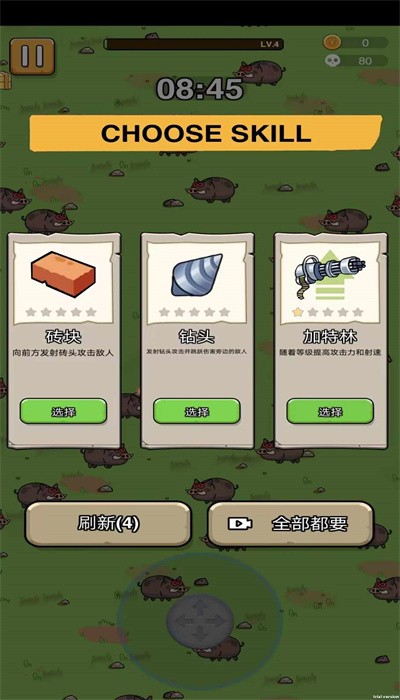 4、作为一款完全免费的游戏,狗狗幸存者提供了令人耳目一新的射击体验。玩家可以通过战斗解锁更多实用道具,增强自身实力。