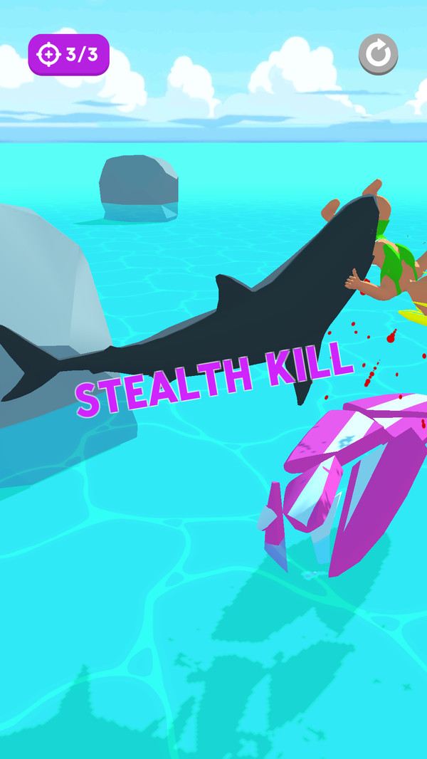 游戏中的人类会对突如其来的危险做出真实反应,他们会惊慌失措地尖叫求救,但这些都无济于事。你可以看到人类悠闲地坐在五颜六色的游泳圈上享受日光浴,完全没意识到危险正在逼近。一旦锁定目标,你就可以展开一场惊心动魄的捕猎行动,从水下发起致命突袭。游戏通过逼真的物理引擎和AI系统,让每一次猎杀都充满紧张刺激的临场感。