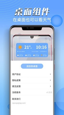 实时天气:实时语音播报,动态背景显示,全面显示天气相关数据。