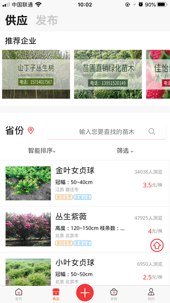 7.苗木网app的智能搜索系统支持模糊匹配和联想搜索,让查找苗木变得轻而易举。