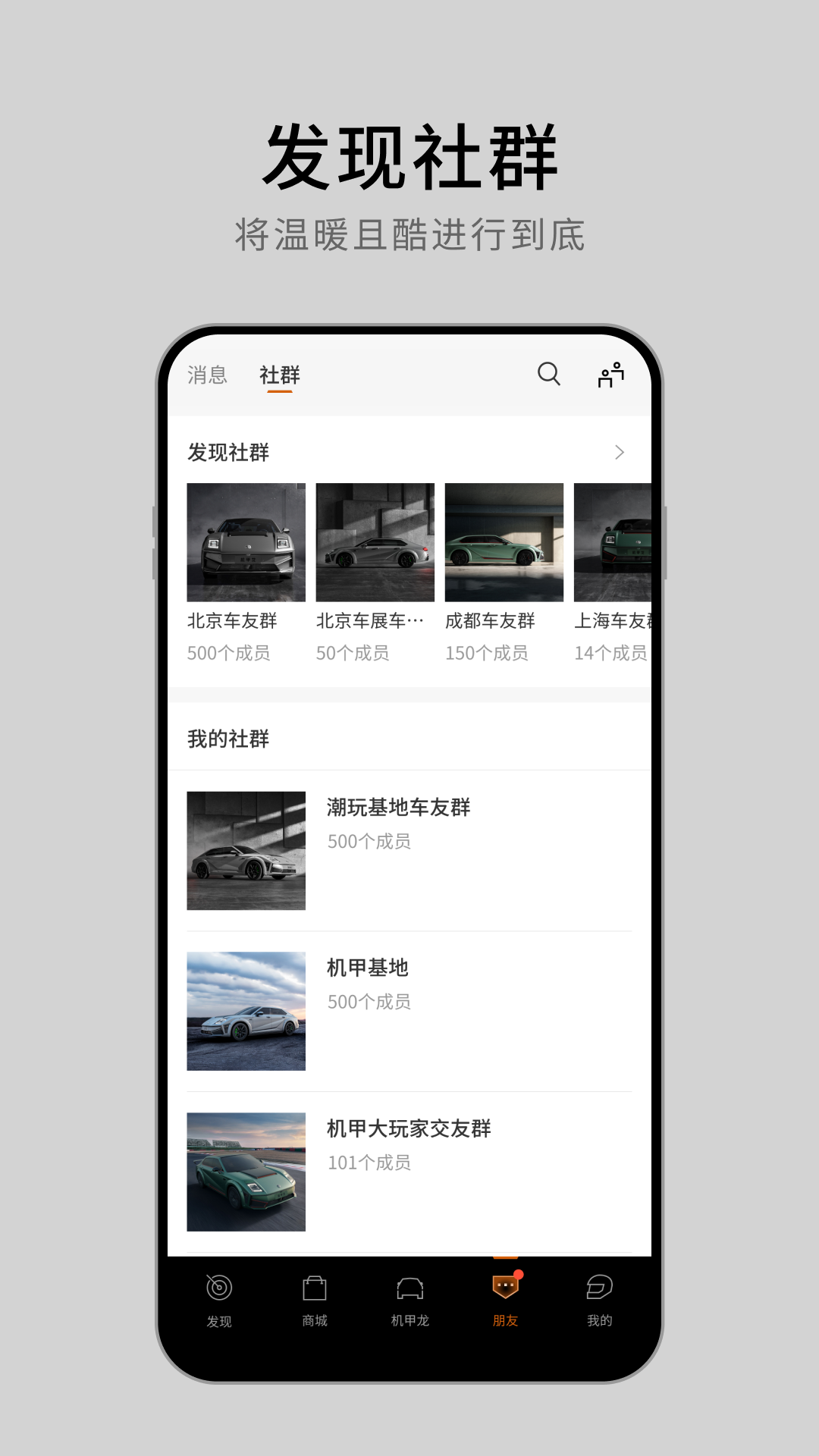 【朋友】这个社交板块打破了传统车友会的局限,构建了全球化的机甲爱好者网络。用户可以加入不同主题的"机甲团",参与线上线下的交流活动。平台会定期邀请机甲领域的大咖进行分享,组织改装workshop,让每位用户都能在交流中提升技能,拓展机甲圈的人脉资源。