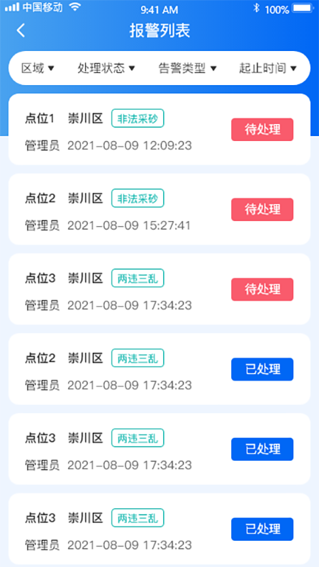 沿江沿海大保护App依托通信铁塔网络,配备高清视频监控、智能雷达系统和无人机巡查设备,形成立体化监控体系。该软件采用前沿的信息采集与传输技术,结合大数据分析、人工智能AI和数字孪生等创新科技,实现对崇川区、开发区、苏锡通辖区内违法行为的精准识别。无论是违法圈圩、违章建筑,还是乱占乱排、非法采砂等破坏行为,系统都能自动监测并及时预警。运维人员可通过App实时查看报警画面,快速定位问题并跟踪处理进度,确保每起事件都能得到及时有效的处置。