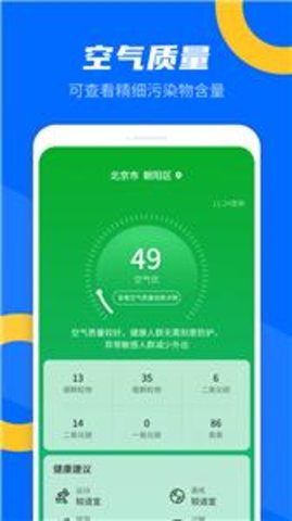 霏雨掌上天气是一款全新的天气预报软件,钓鱼、穿衣推荐,健康养生等贴心功能。恶劣天气预警,全面覆盖市、县、区、镇,预报准确,推送及时。而且所有的天气数据信息都是官方发布的,详细真实,大家可以放心查看,感兴趣的小伙伴快点来下载吧,千万不要错过了!