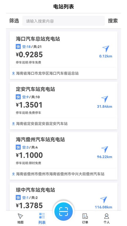 电站搜索:智能搜索功能支持关键词查找充电站,结合精准导航系统,一键规划最优路线。