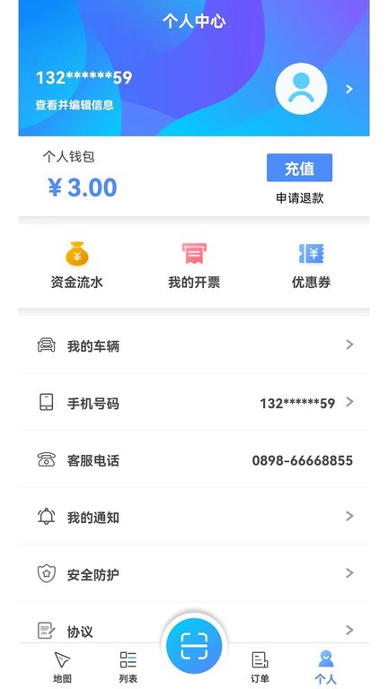 个人中心:支持用户信息管理、多车牌绑定、隐私政策查阅等个性化设置,保障账户安全;