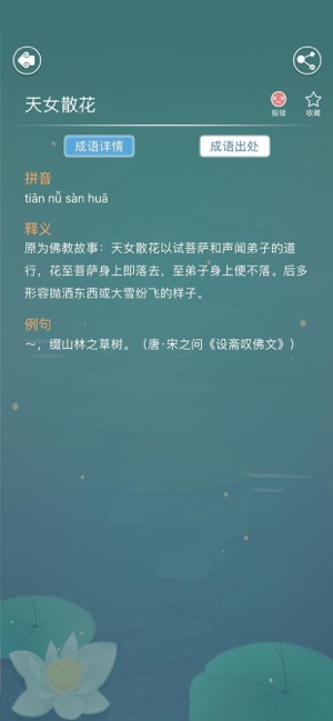 6、成语收藏:用户可以将常用或感兴趣的成语加入收藏夹,方便随时复习。学而时习之,温故而知新,这一功能让学习更加高效。
