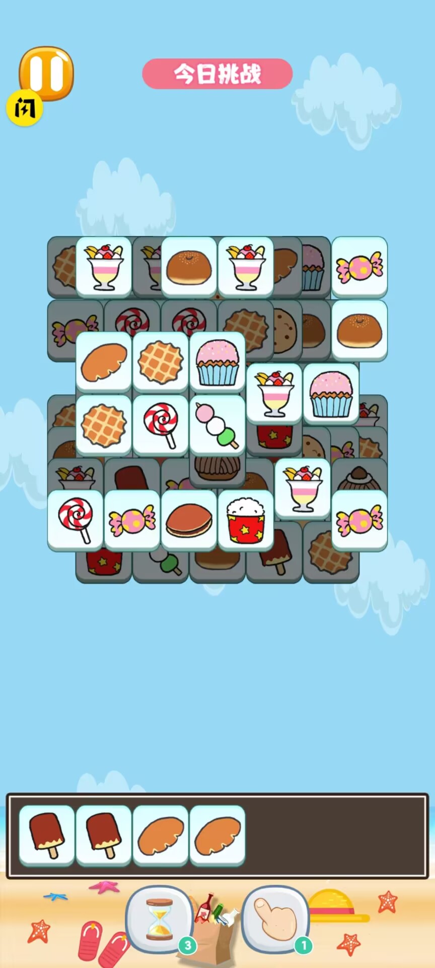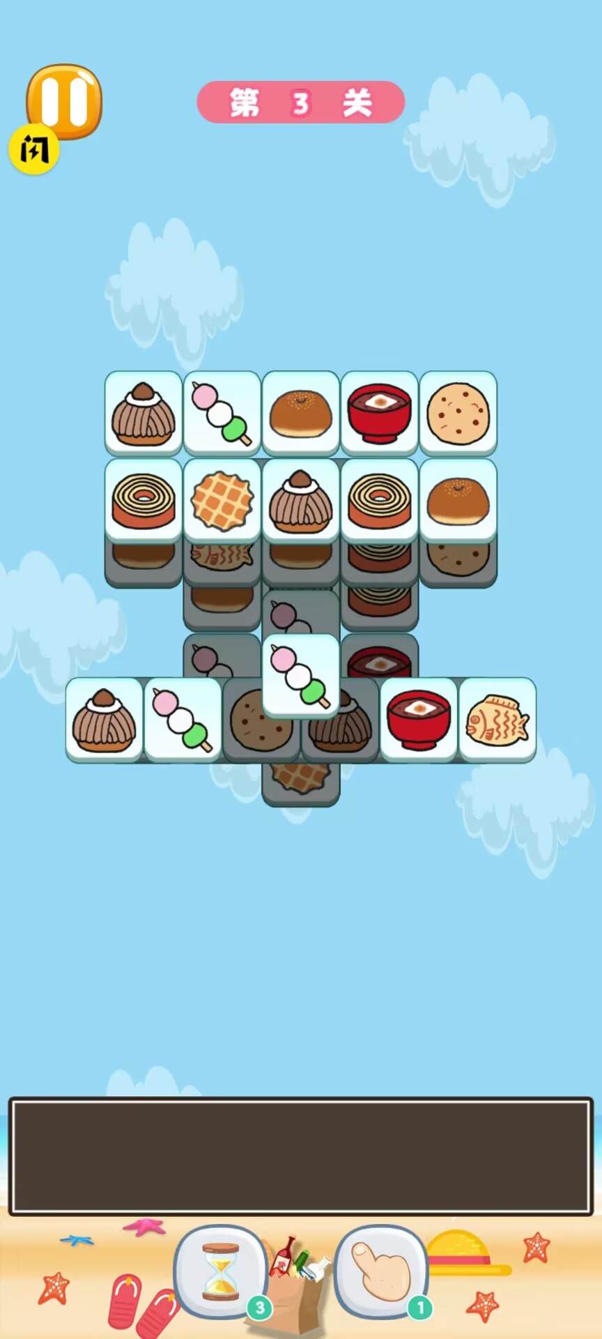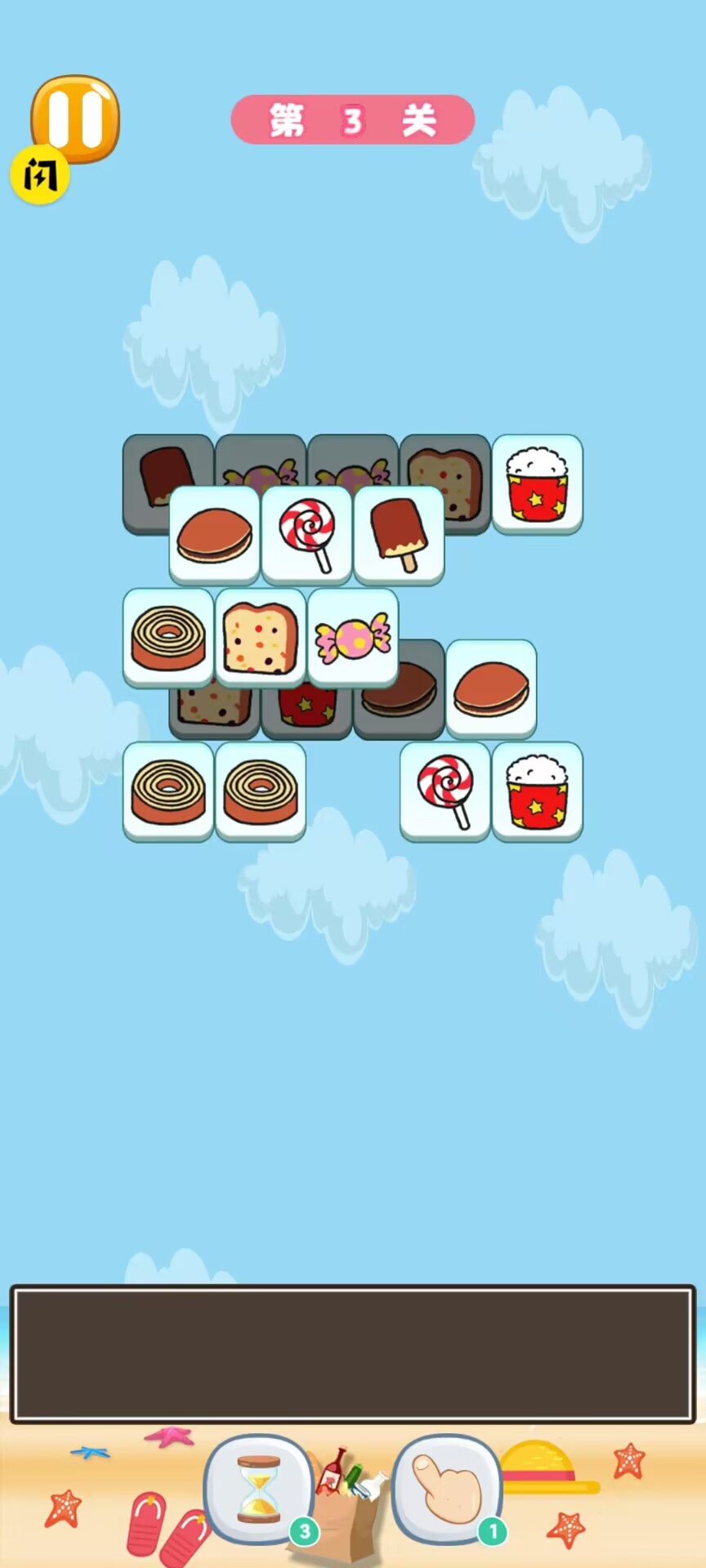 4、整个游戏过程没有任何时间限制,玩家可以自由发挥,只需要将相同类型的串串巧妙地堆积在一起就能完成目标。