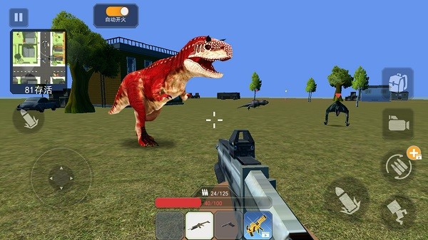 3、除了传统的射击玩法,游戏还融入了生存要素。玩家需要管理健康值、饥饿度和水分,在狩猎之余寻找食物和干净水源。夜晚降临后,某些夜行性恐龙会变得更加活跃,带来全新的挑战。