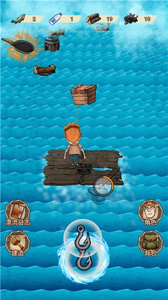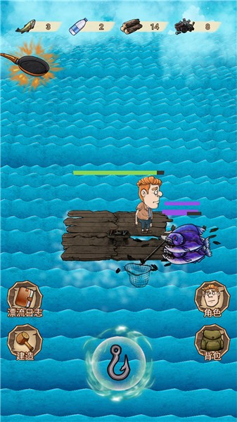 2、丰富多样的生存玩法:除了基础的物资收集和木筏建造外,游戏还融入了钓鱼系统、淡水收集、食物烹饪等深度生存元素,让求生体验更加真实全面。