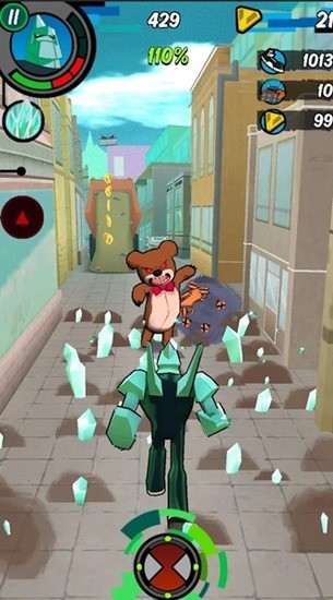 1.角色变身系统:玩家可以随时变身为10种外星英雄,每种英雄都拥有专属的跑酷动作、攻击方式和特殊技能,适应不同的赛道环境。