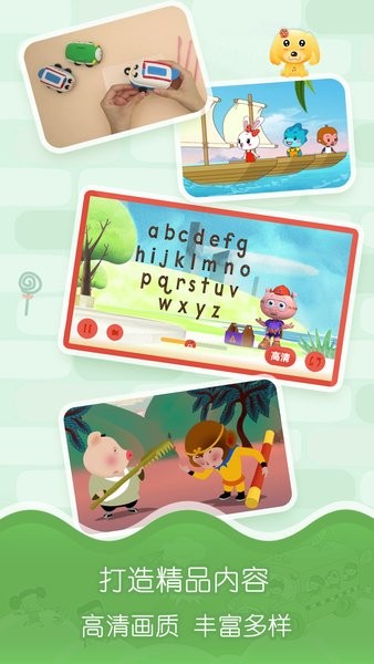 2、坚持提供高品质内容,拒绝低俗粗糙的制作。所有动画和音乐都采用高清音质和精美画面,同时具备完善的流量保护机制,避免孩子误操作产生额外流量消耗。