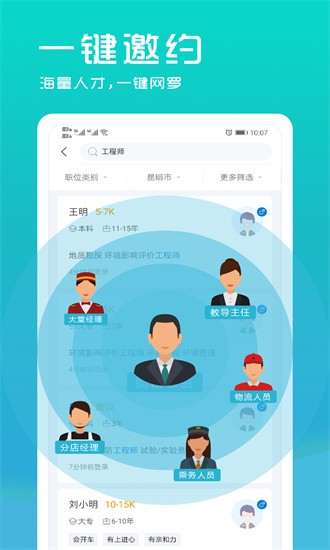 【一站式招聘管理】:集成人才搜索、附近人才、部门管理、职位管理、照片筛选、及时消息、快捷回复等实用功能,为企业提供全方位的招聘管理解决方案;