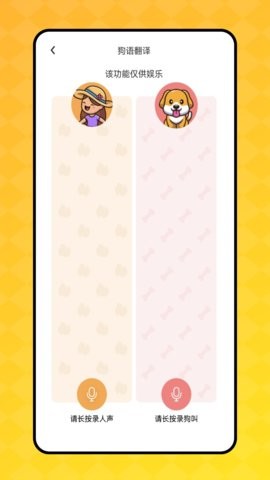 1、长按录制功能采用智能声纹分析技术,可精准解析狗狗不同音调叫声的含义,无论是兴奋的短促吠叫还是低沉的警告声,都能准确翻译成人类语言,让主人实时掌握宠物情绪变化,真正实现跨物种心灵对话。