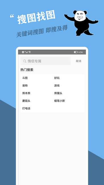 4、强大的搜索功能支持关键词联想和以图搜图,0.5秒就能找到心仪表情。