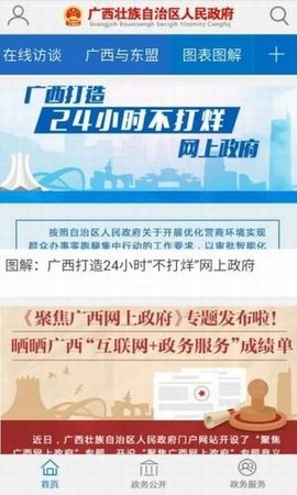 广西政府app客户端是一款政务效劳软件,是广西人民政府的权威效劳平台,在这里,用户能够看到各种政府信息和重要决策文件,随时理解政府的停顿,及时更新最新的城市信息,欢迎下载!