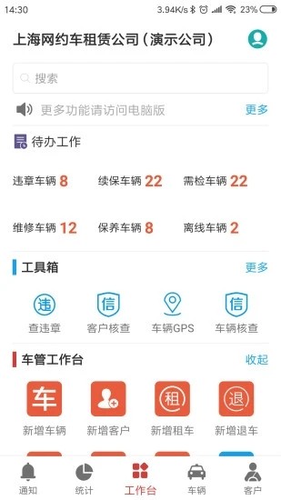嘀友管车app是一款专业的汽车租赁平台管理软件,为租赁企业提供全方位的数字化解决方案。该软件深度整合了车辆管理、客户管理、财务管理等核心业务模块,通过智能化手段帮助车管、驾管、财务、销售、风控等不同岗位人员实现高效协同。系统采用云端部署模式,支持多终端访问,数据实时同步更新,有效提升企业运营效率。同时,平台还提供大数据分析功能,帮助企业精准把握市场动态,优化资源配置,实现业务快速增长。