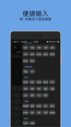 虽然输入界面设计较为简单,但这种简约风格反而提升了操作效率,让你能够专注于计算本身。软件支持的计算功能相当全面,无论是简单的加减乘除,还是复杂的微积分运算,都能快速给出精准结果。