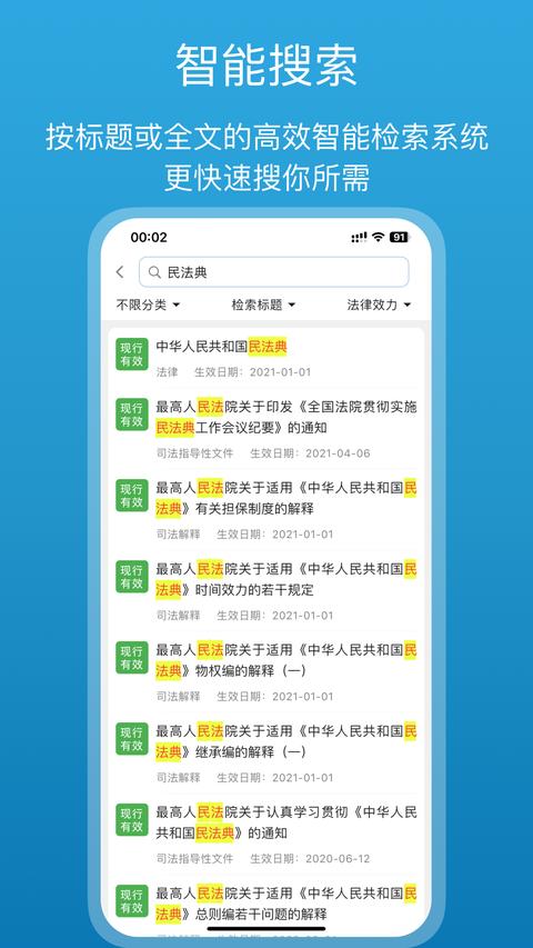 【实时更新】专业团队24小时监控法律动态,确保所有法律法规都能在颁布后第一时间更新,让用户始终掌握最新法律信息。