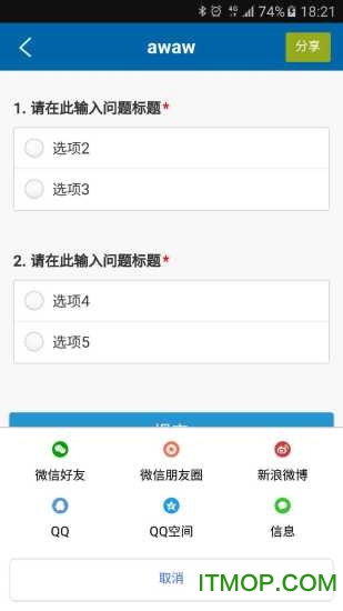 问卷星试题破解答案是一款功能强大的手机问卷调查应用,专为用户提供便捷的在线问卷创建和考试设置服务。通过该软件,用户可以轻松设计各类问卷、考试试题,并在线进行评估,操作简单高效。无论是市场调研、教育培训还是员工考核,问卷星都能满足您的需求。平台支持多种题型设置,提供完善的统计分析功能,并完美适配移动端,让您随时随地完成问卷收集与数据分析。目前已有超过33亿人次使用问卷星填写问卷,是您开展各类调查评估的得力助手。
