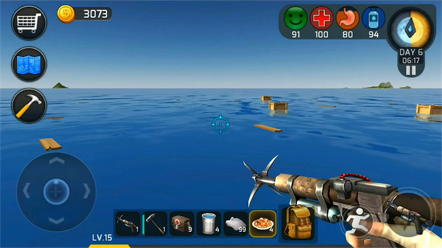 2、独特的建造系统,允许玩家自由设计和扩建木筏,从简单的平台到复杂的多层建筑,打造专属海上基地