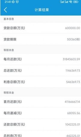 3、采用直观的输入输出界面,只需简单输入贷款金额、期限等基本信息,即可立即获得详细的还款计划和费用明细,让复杂的计算变得简单明了。
